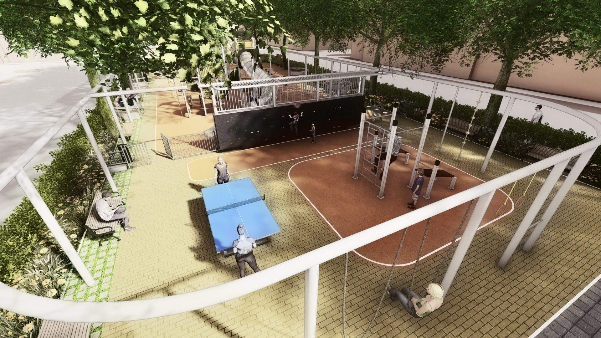 Čo sa na ihrisku zmení? Architekti z ateliéru Guldan Architects zapracovali do štúdie desiatky podnetov. Medzi hlavné novinky patria: