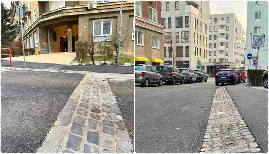 - Širšie centrum: Tu mestská časť volí kombinovaný prístup. Ikonická dlažba sa osádza k dôležitým inštitúciám, zatiaľ čo zvyšok plochy tvorí nový asfaltový povrch, čo umožňuje rýchlejšiu a lacnejšiu opravu väčšieho územia.