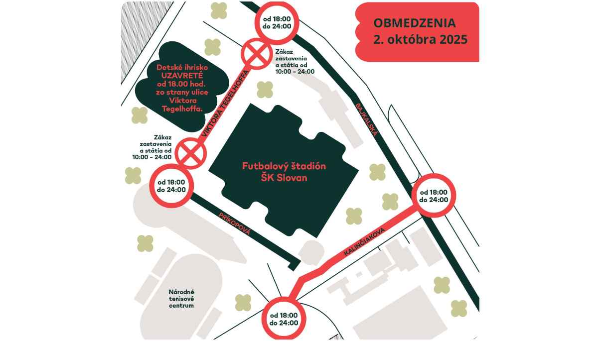 👉 Kalinčiakova (od Tower 5 po Bajkalskú) - 10:00 Zákaz parkovania na ul. Viktora Tegelhoffa (vozidlá budú odtiahnuté)