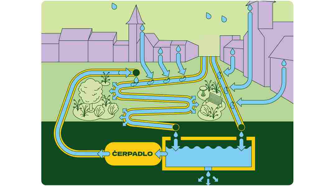 - dažďová voda steká do podzemného potrubia